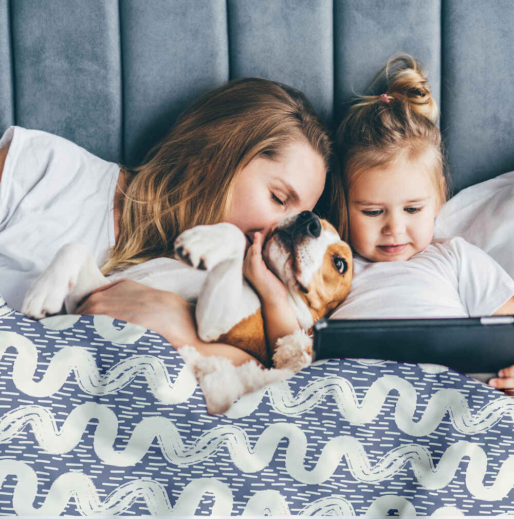 Reviews for Therapy blanket and bedding set, blue and white waves.