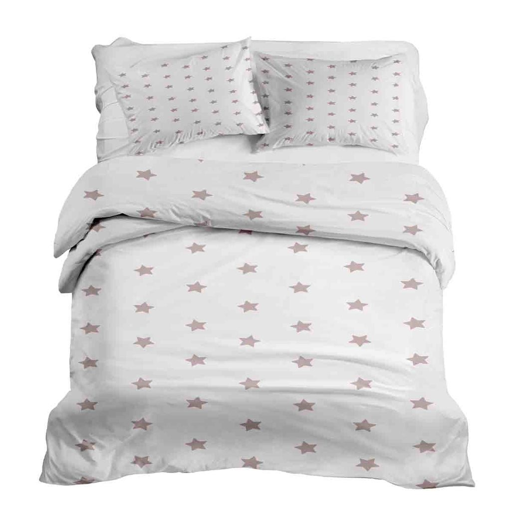 Reviews for Therapy blanket bedding set, white with pink stars.