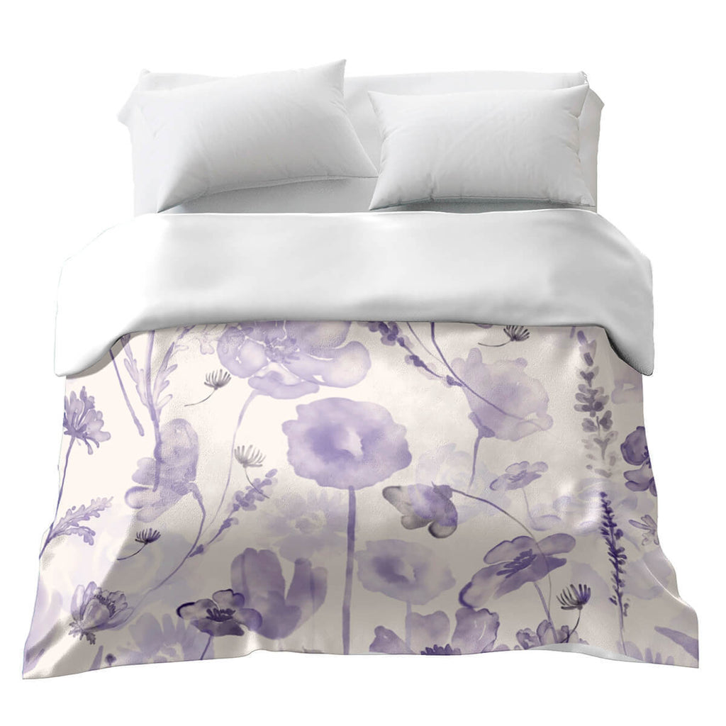 Original therapy blanket - cotton cover purple watercolor blossoms