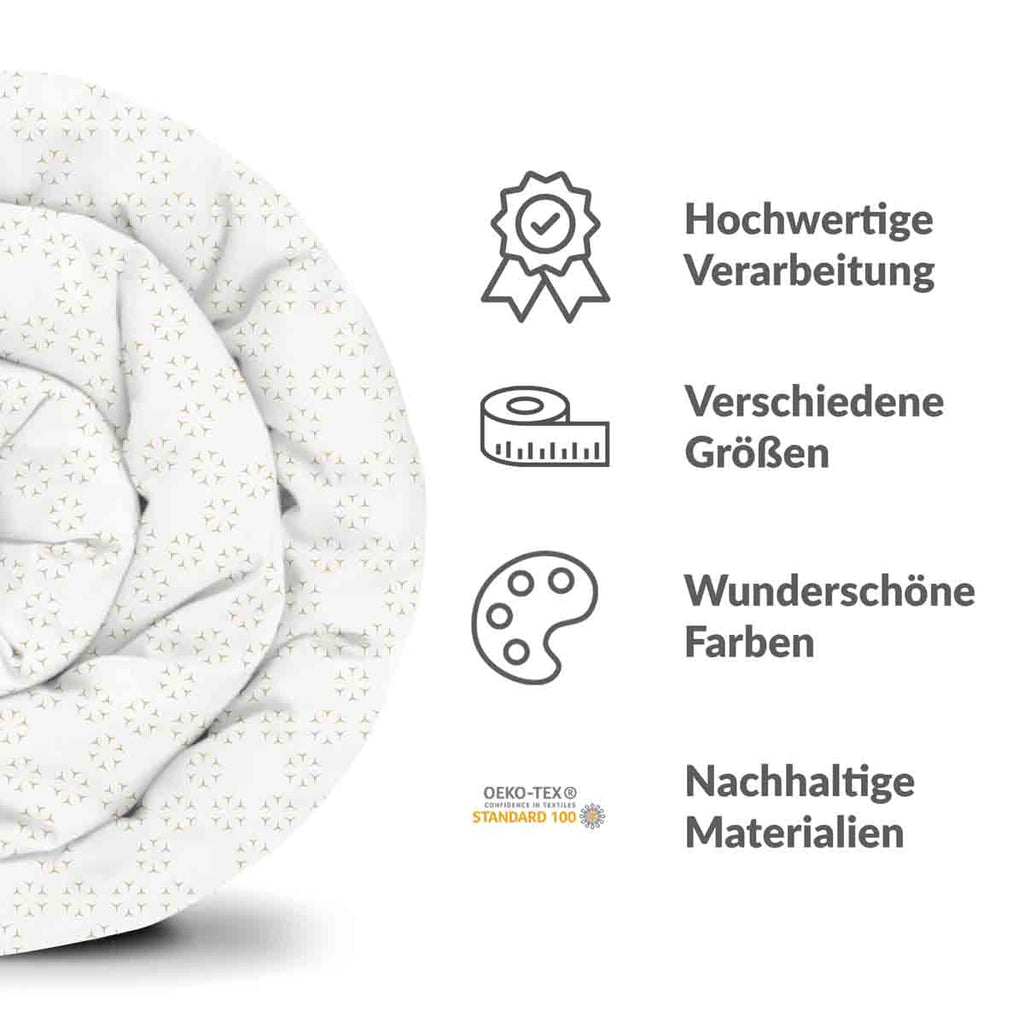 The standard therapy blanket is weighted with high-quality, sand-fine glass beads that are contained in small chambers. The premium therapy blanket has small stainless steel beads inside, which are firmly glued in place and therefore do not shift. The covers of both models are made from 100% cotton.