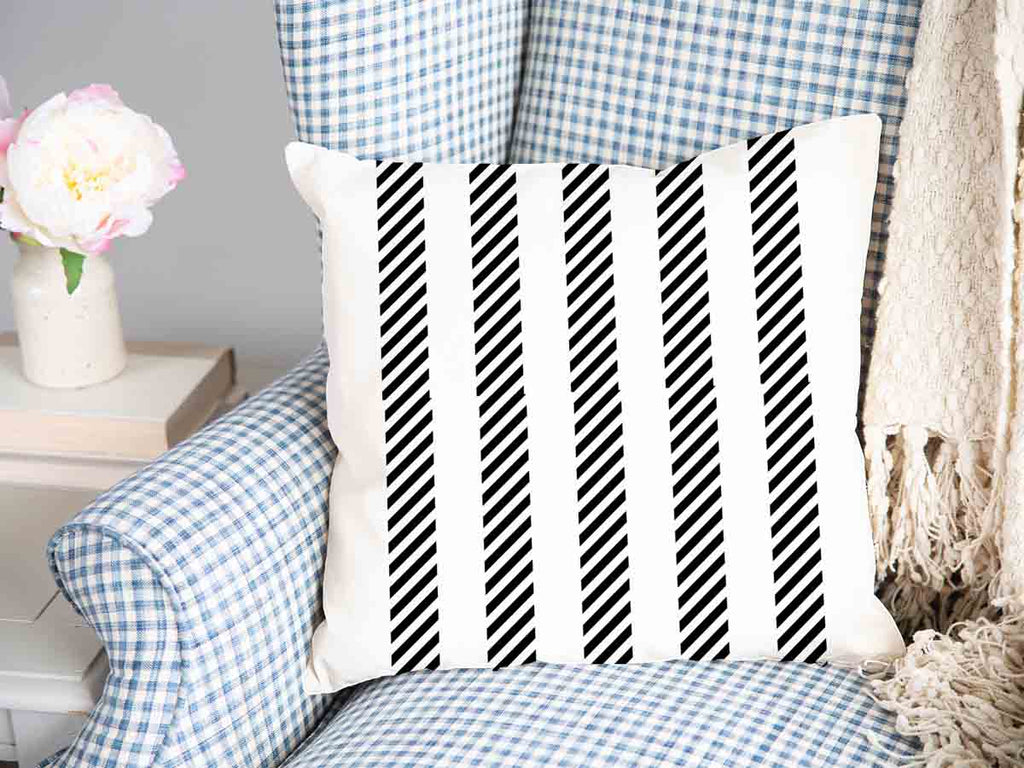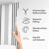 Health pillow, grey with thick and thin stripes.