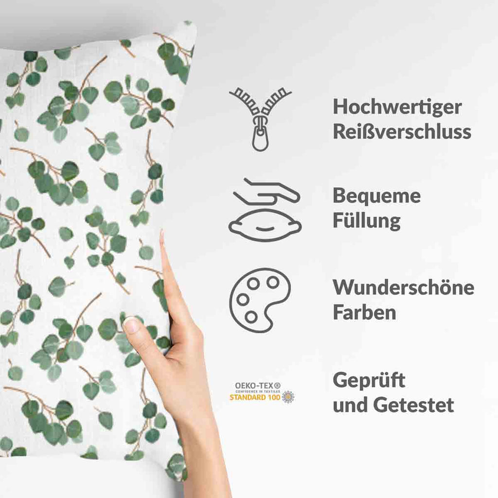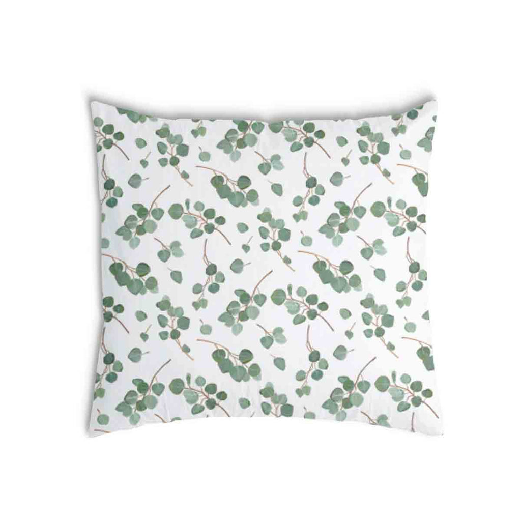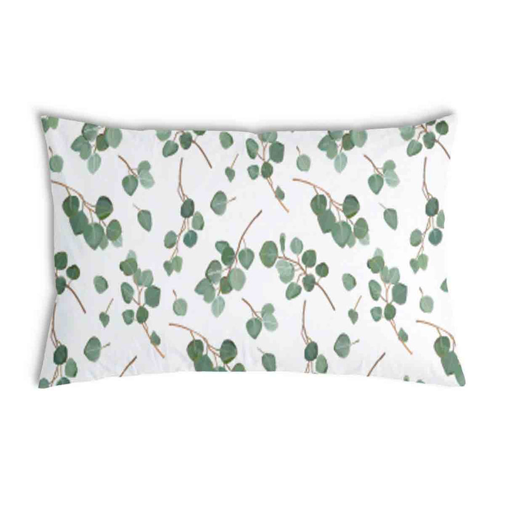 White health pillow with eucalyptus branches