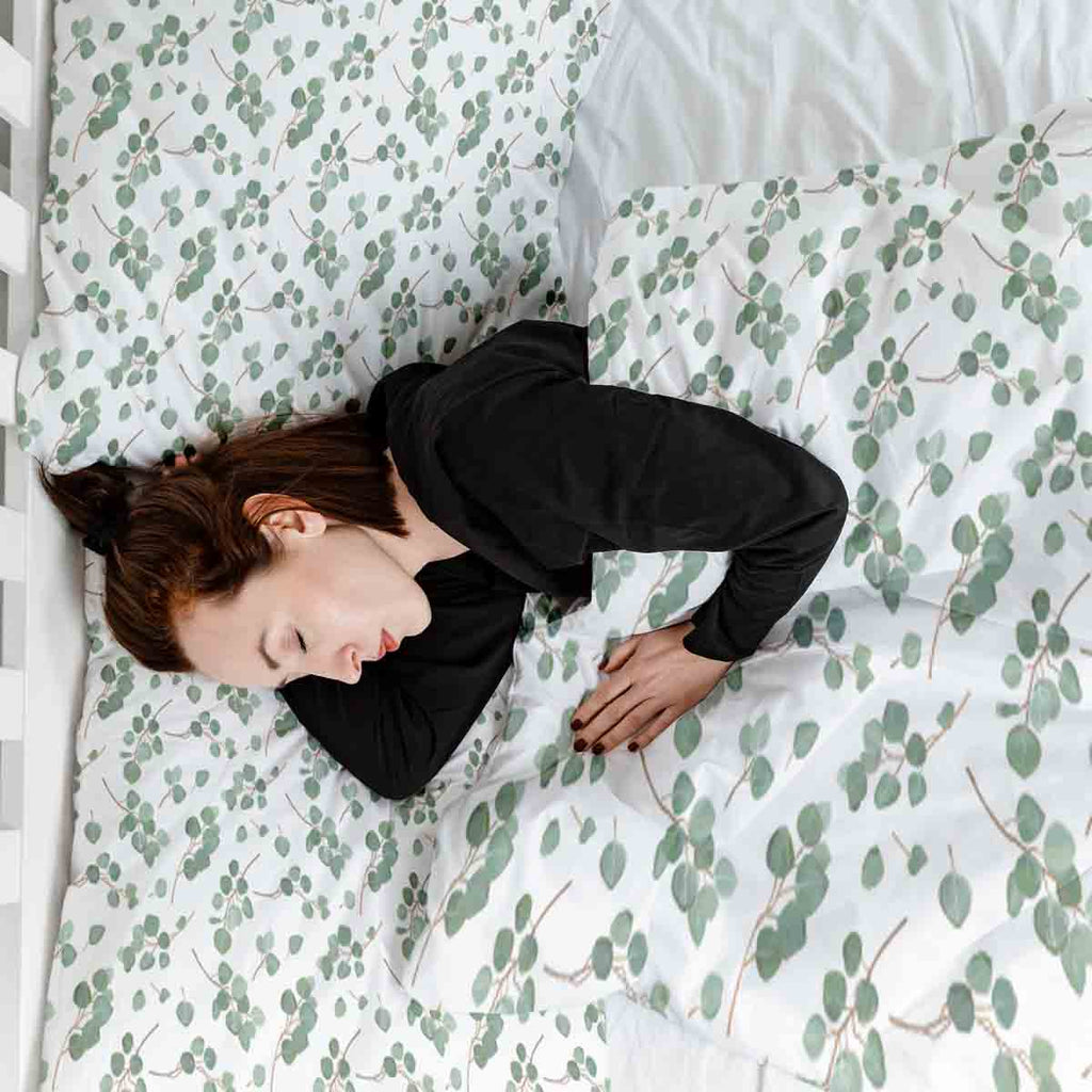 Reviews for Therapy blanket bedding set, white with eucalyptus branches.