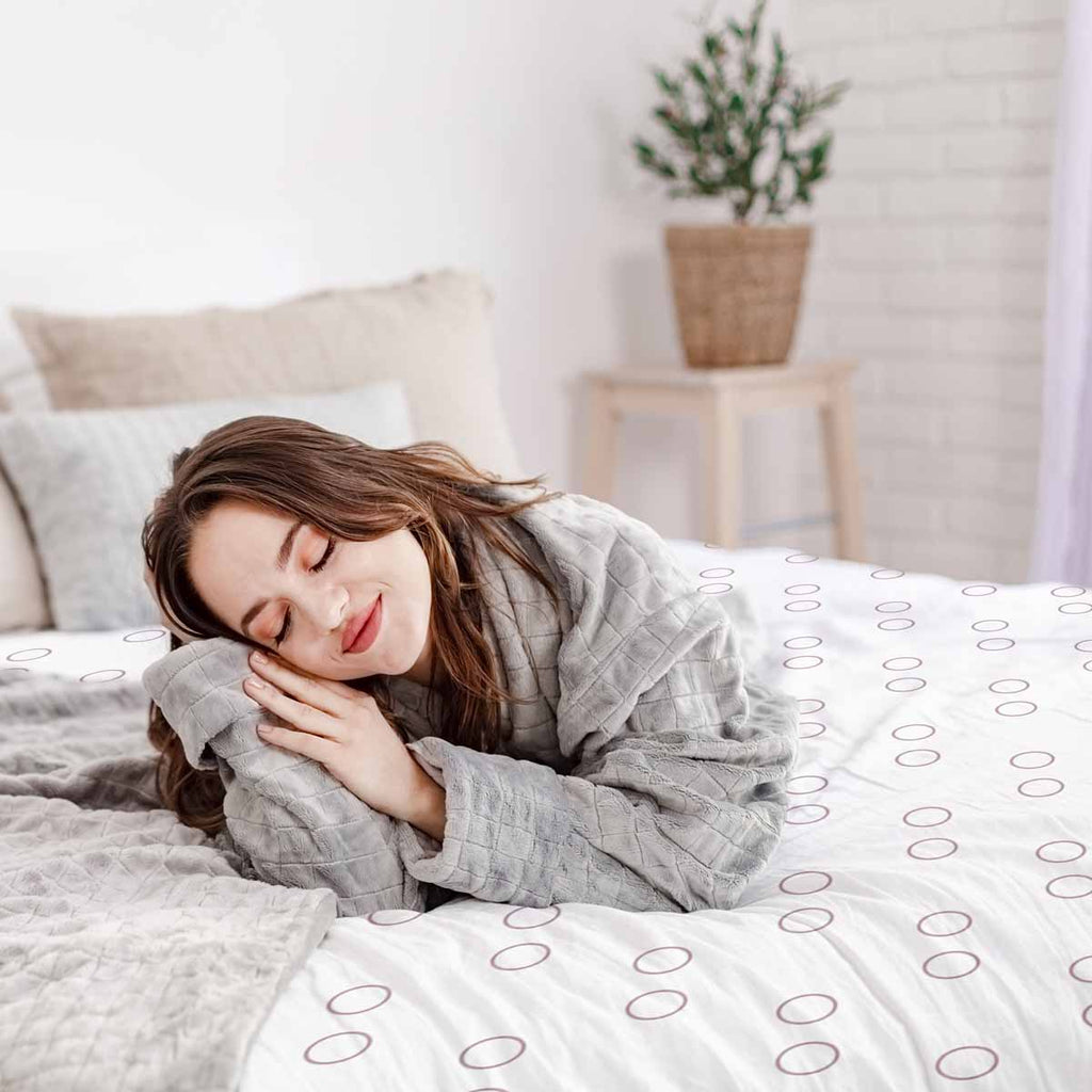 Therapy blanket bedding set, white with circles.
