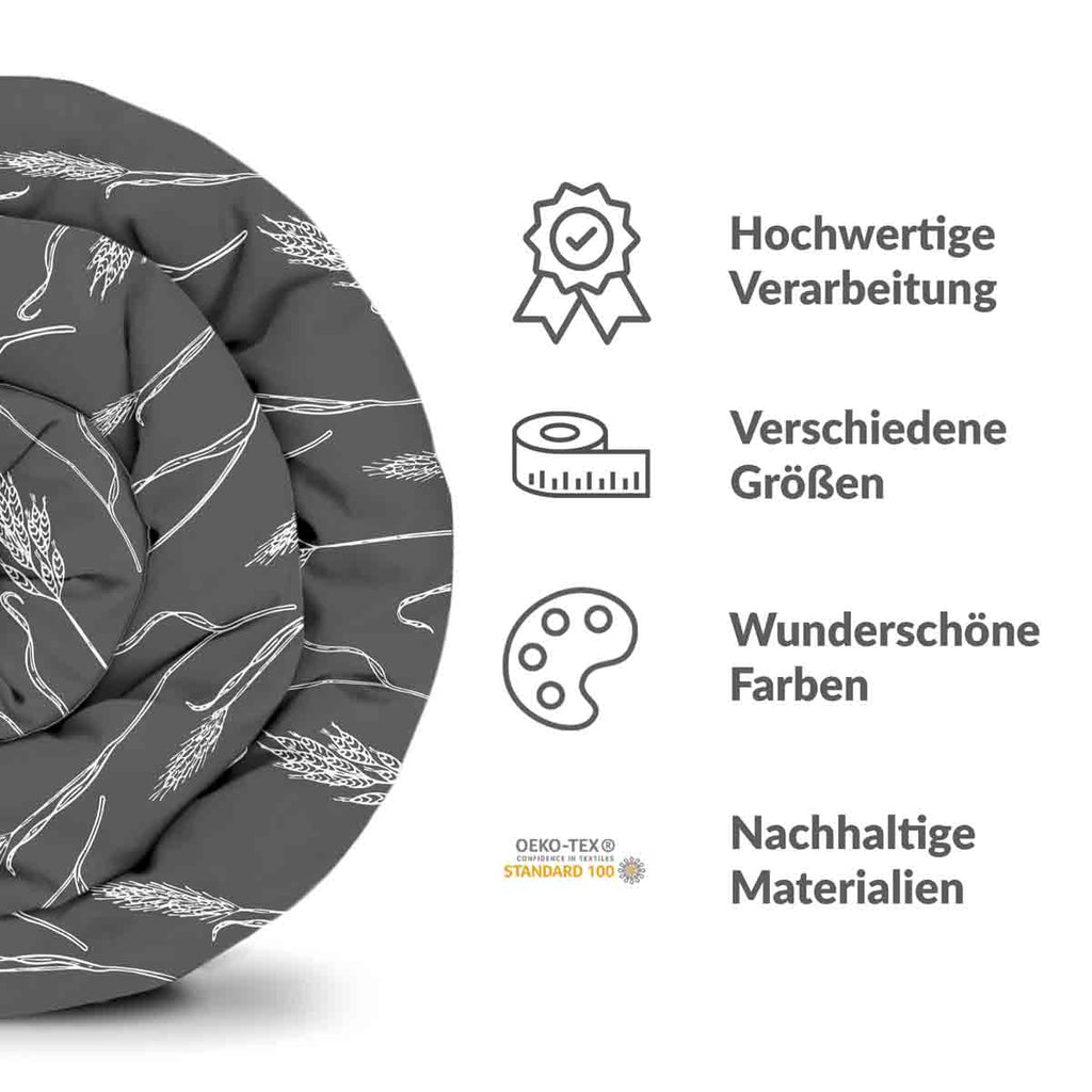 The standard therapy blanket is weighted with high-quality, sand-fine glass beads that are contained in small chambers. The premium therapy blanket has small stainless steel beads inside, which are firmly glued in place and therefore do not shift. The covers of both models are made from 100% cotton.